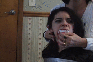 Gina has been receiving many emails from fans wondering how many panties she can pack into her mouth. She decides to take the challenge and packs many pairs in her mouth. Clear tape is used to secure them in and she gag talks through the packing after they are secure. Later she uses lipstick to draw sexy lips on the clear tape before more muffled talking to you.