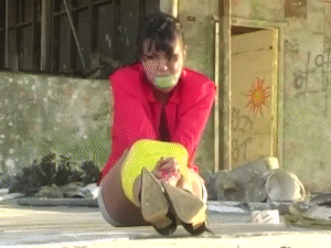 Lioness answers an ad in the local paper for a bondage model. She arrives and answers some questions before being told what is expected. To her surprise, she is immediately pushed face down on the floor and put into a strict tie. Her mouth is packed and cleave gagged and she is groped before bing placed in a brutal hogtie in her skirt, socks and ked sneakers,