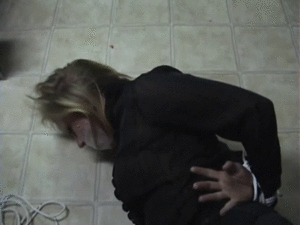 Gina and Matt have planned a fake robbery to get some extra cash from the insurance company. They are sure that things will go without a hitch. Somewhere along the line, things go wrong and Gina is helpless and thrashing around the floor. Gina is bound with mouth packed, duct tape securely wound around her head. She is wearing pantyhose, boots, skirt and blouse. Lot's of gag talk and upskirts in this one.